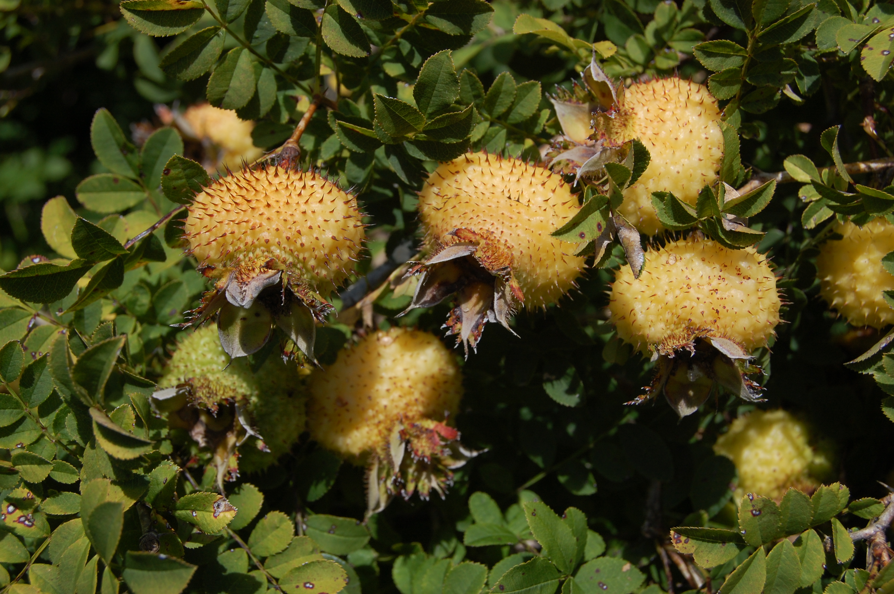 刺梨因果实内含有丰富的维生素C,被称为"维C之王"(不是猕猴桃哦)。是贵州有名的野果,在河南开封也有大规模的人工种植。上世纪90年代风靡医药界的三株口服液也采用刺梨提取物,其价值可见一斑。