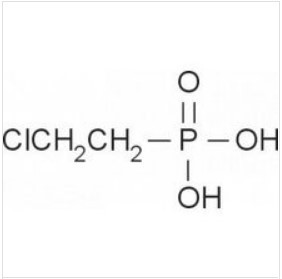 它的学名是2-氯乙基磷酸,一份子乙烯利可溶解一份子乙烯,农业中用它的溶液喷洒或是浸泡果实使其加快成熟。