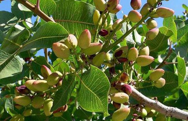 这是开心果还长在树上的样子,阿月浑子落叶小乔木,树高约10米,奇数羽状复叶,树龄长,生长缓慢,实生苗从种子种植的第一年算起,至少需六年结果,结果率逐年增加,果实较大,长圆形,长约2厘米,宽约1厘米,熟时呈黄绿色或粉红色。
