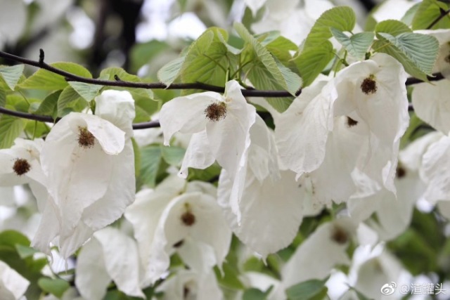 珙桐是非常美丽的一种落叶乔木,世界上著名的观赏树种。高约十至二十米,树形高大挺拔,叶子广卵形,边缘有锯齿。本科植物只有一属两种,两种相似,只是一种叶面有毛,另一种光叶珙桐是光面。