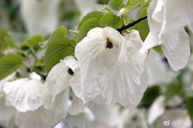 开花的季节,树上那一对对白色花朵躲在碧玉般的绿叶中,随风摇动,远远望去,仿佛是一群白鸽躲在枝头,摆动着可爱的翅膀,因此被誉为“中国鸽子树”。