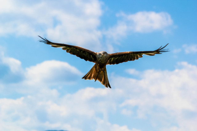老鹰由于地面的气温太高而搏击在清凉的高空。