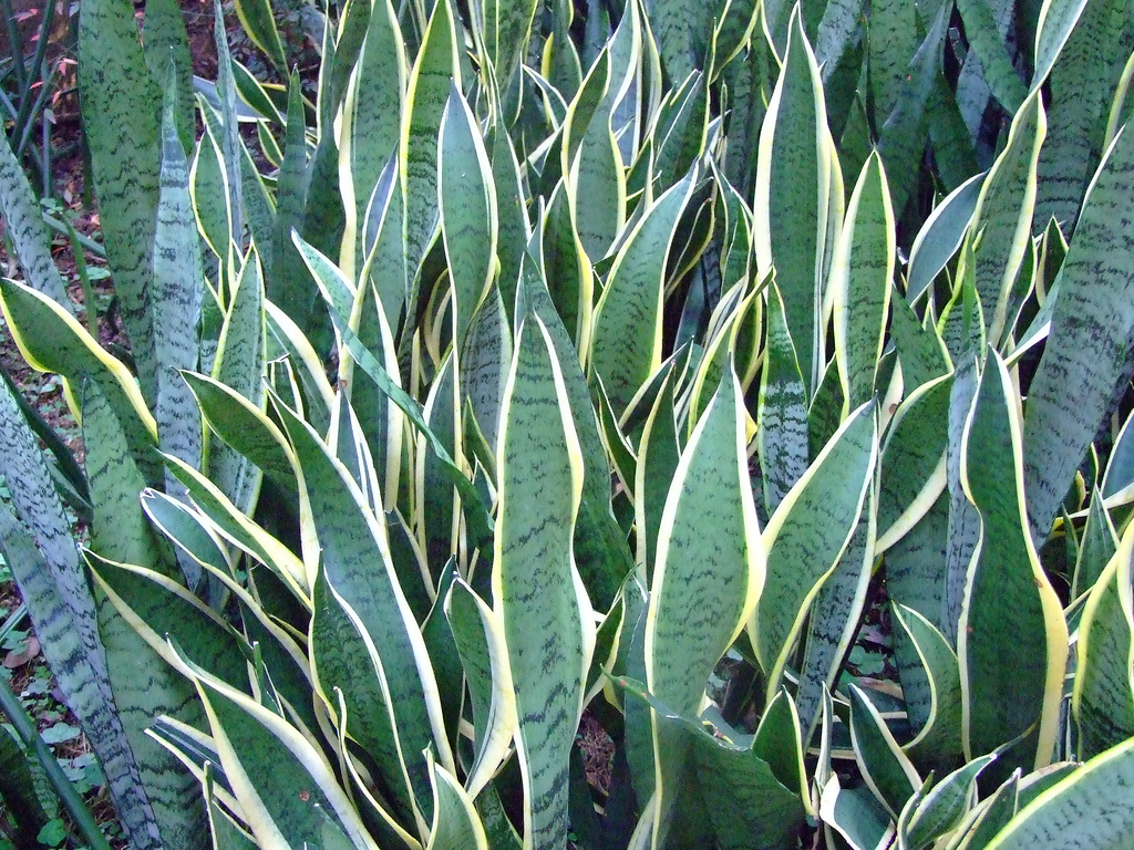 虎尾兰听名字就知道像老虎尾巴,直直地立着,在室内也能发挥能量,可以清除空气中的有害物质。