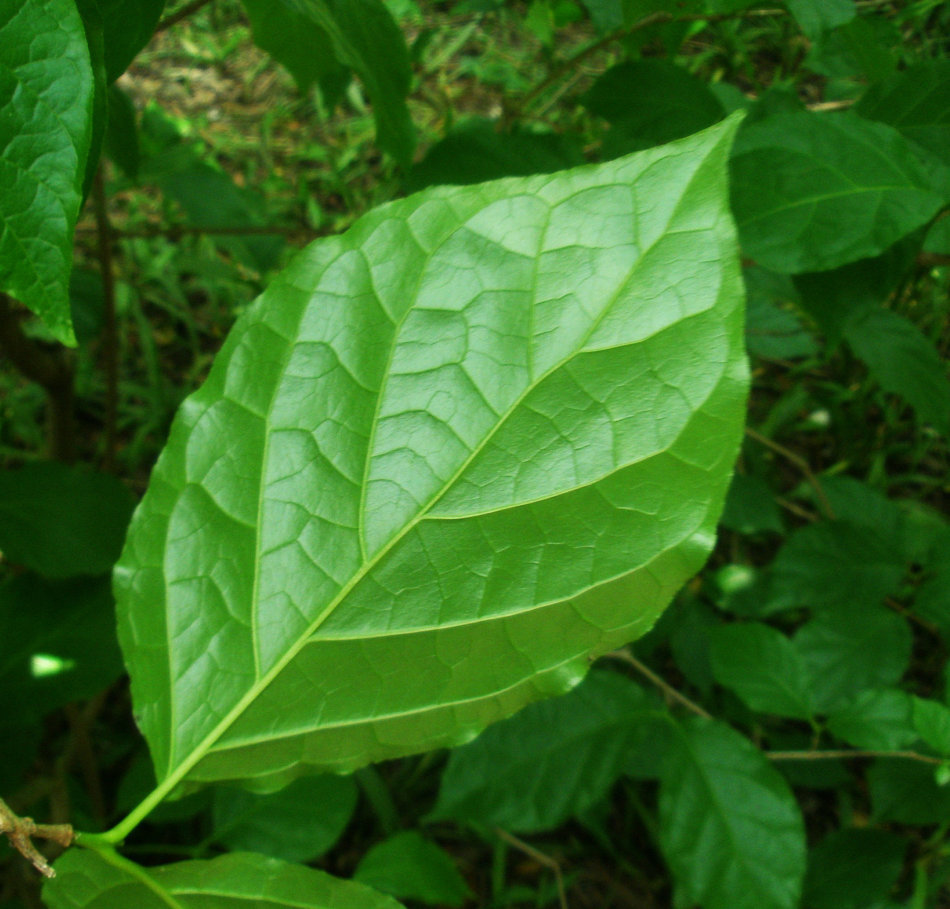 夏蜡梅的叶对生,膜质,卵圆形至倒卵形,全缘或具不整齐细齿。