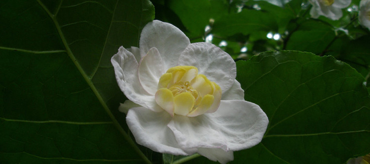 它的花一般先叶开放,单独生长于嫩枝的顶端,花朵洁白硕大,单生,两性。花萼呈花瓣状,花被片为多数,雄蕊18~19枚,着生于肉质花托顶部,花丝极短;心皮为多数,离生,着生于壶形花托内,子房上位,每室1~2胚珠。