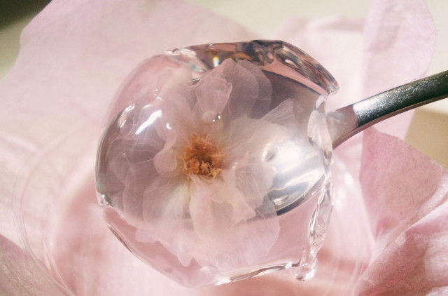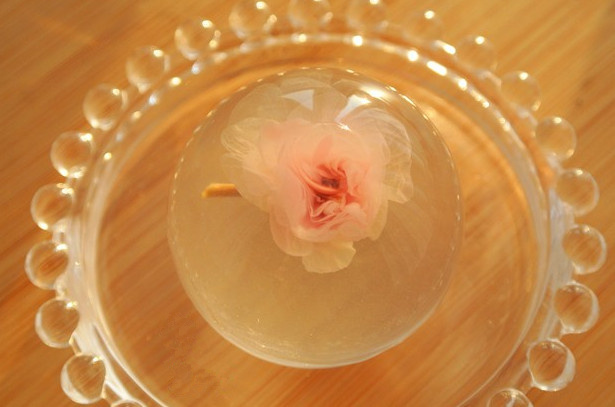 加一滴粉色色素调色,倒进容器,放入樱花,冷藏4小时就大功告成啦!又可以拿去唬人了!这款樱花果冻太简单啦!零失败!
