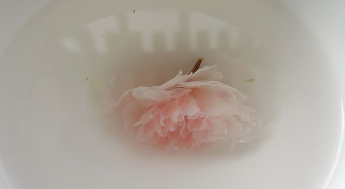将盐渍樱花用热水泡开去盐备用(多过几次水不然会咸)