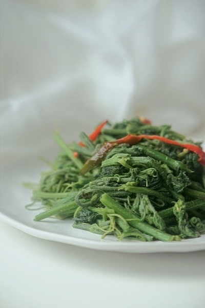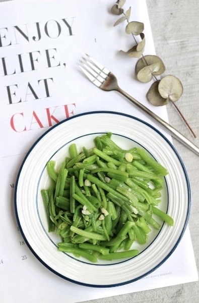 4. 倒入南瓜藤大火迅速翻炒,最后放盐、鸡精调味即可。