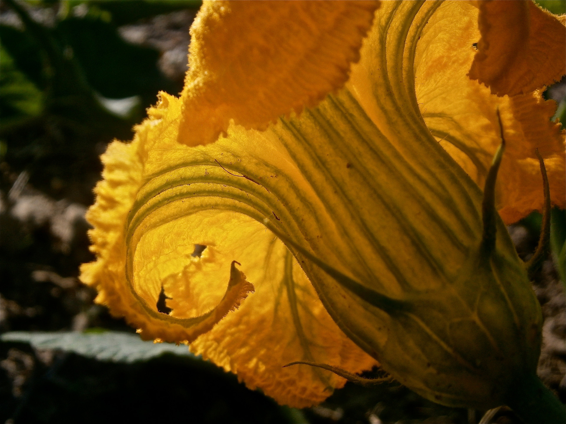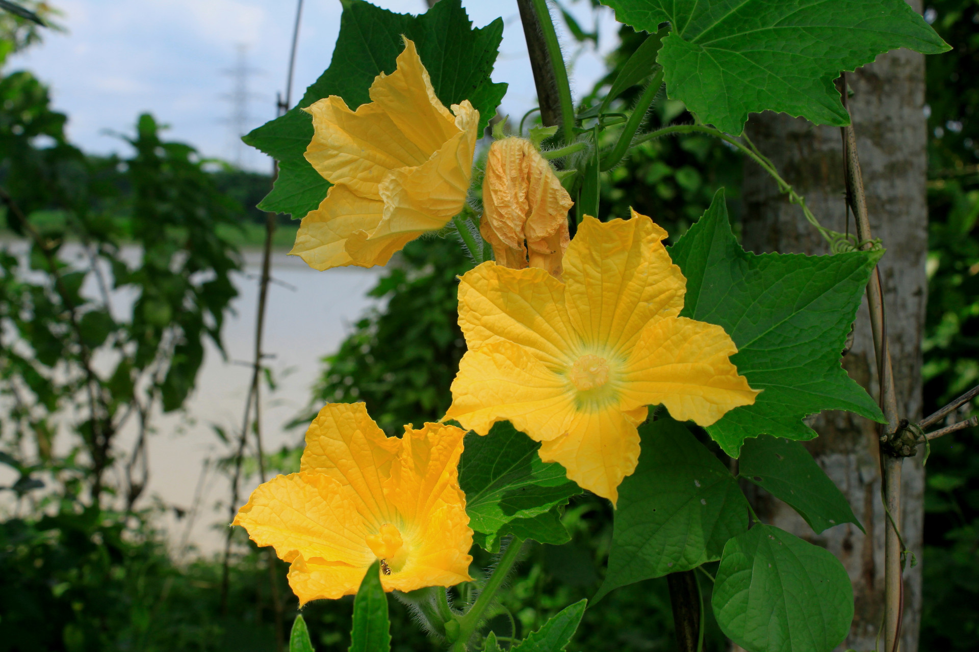 别看它的果实笨重,南瓜花却是大朵大朵的,一片金黄煞是好看。