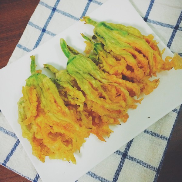 南瓜花?放油锅里炸一下,大人孩子都爱吃,隔壁家孩子都馋哭了!