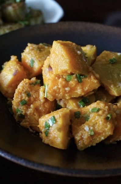 1,南瓜去皮切小块后用锅蒸15分钟左右。