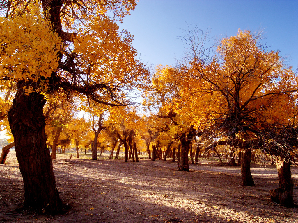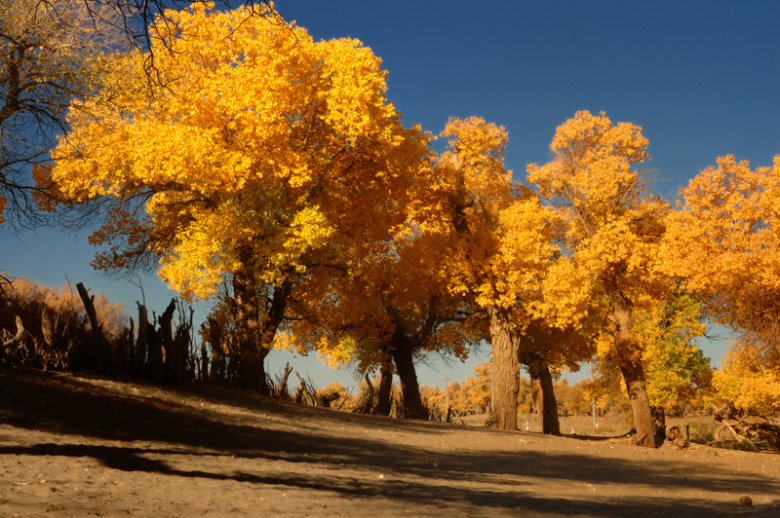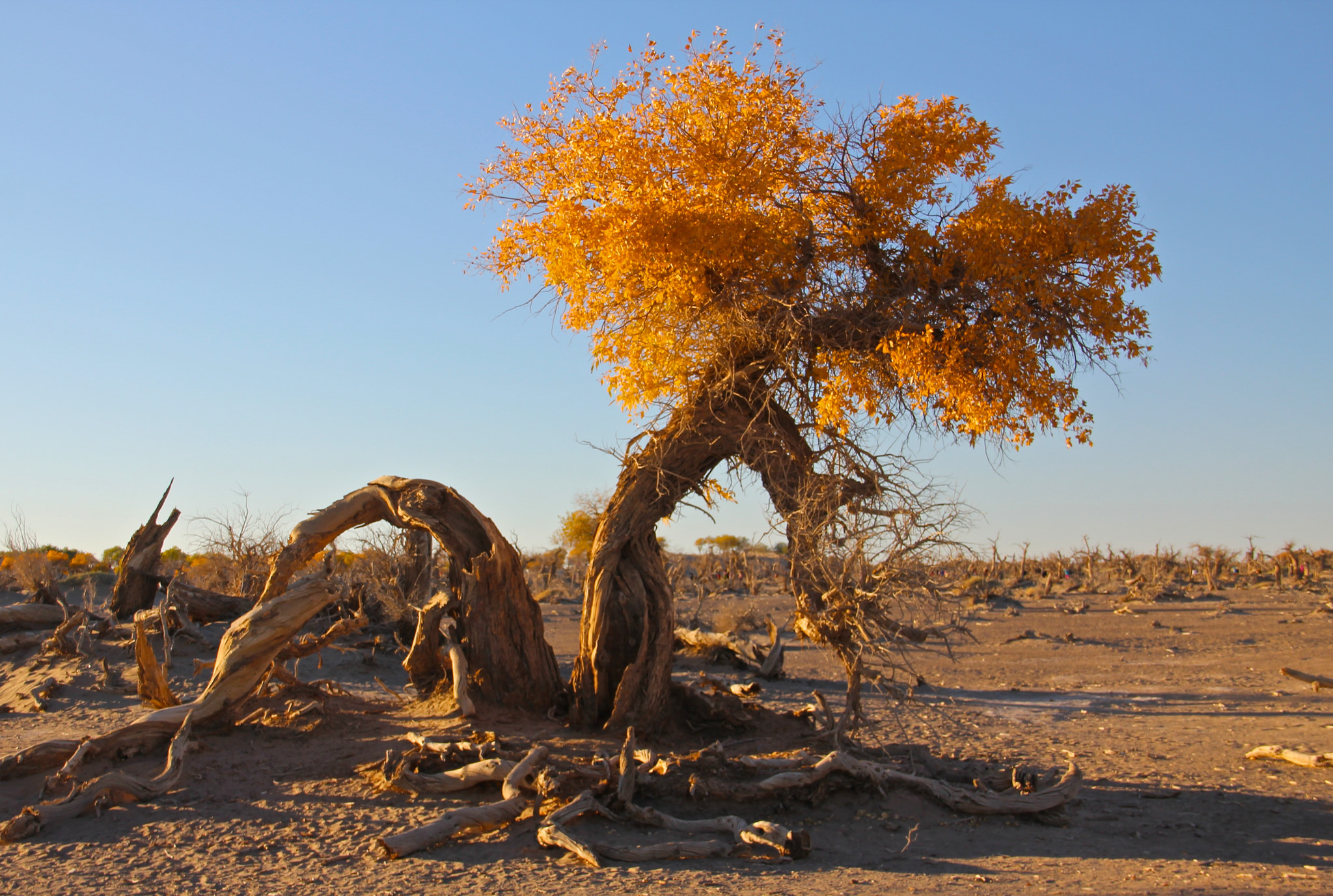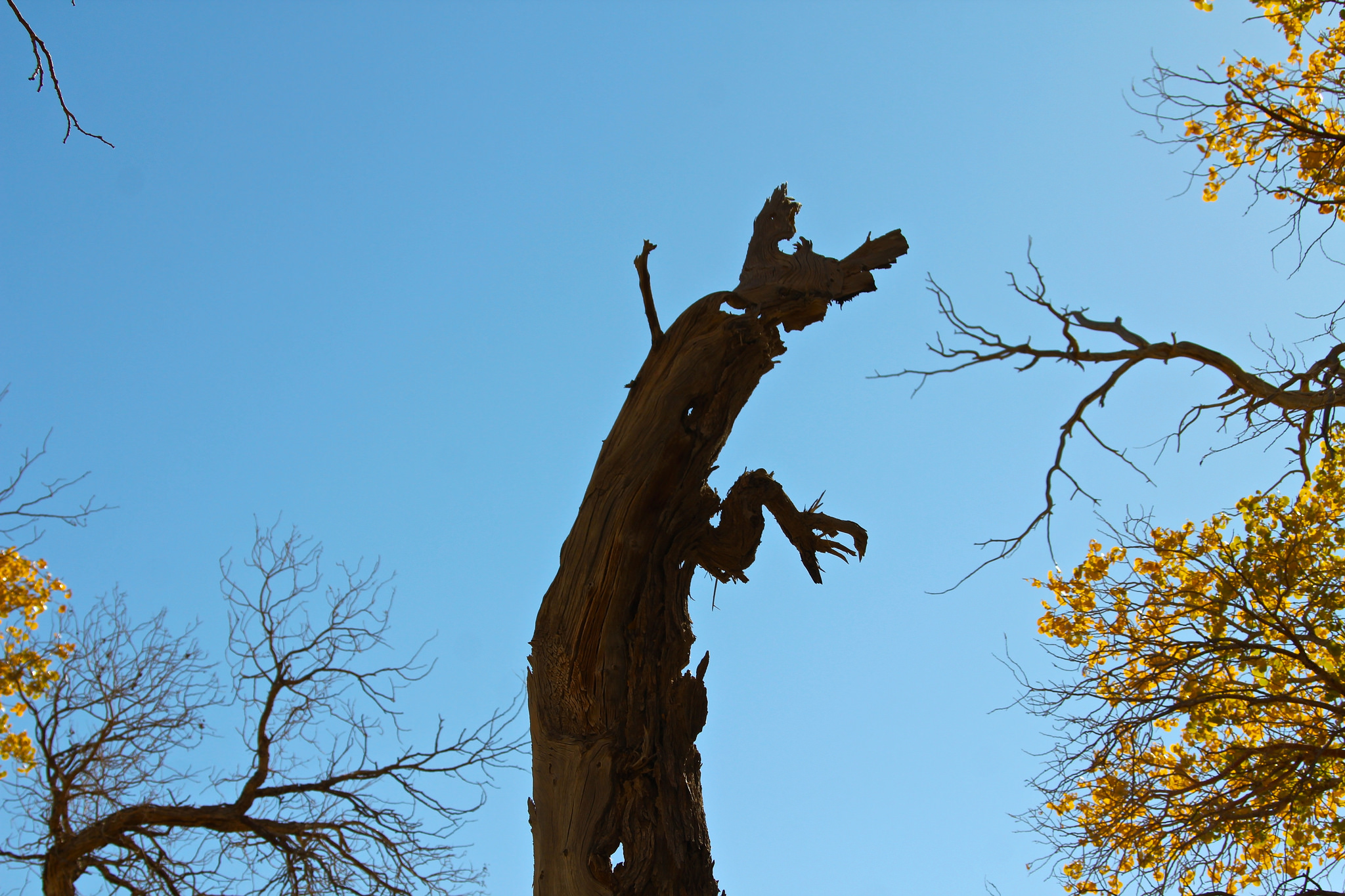 望着那片充满魔力的胡杨,想触摸它皮干上的沟沟壑壑,去看看上面是否有飞沙走石和风霜雨雪留下的印记。