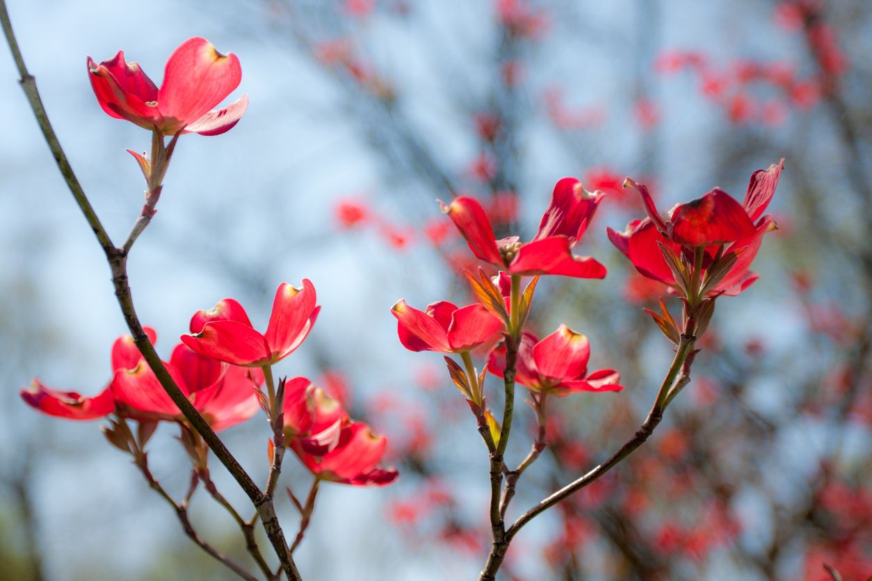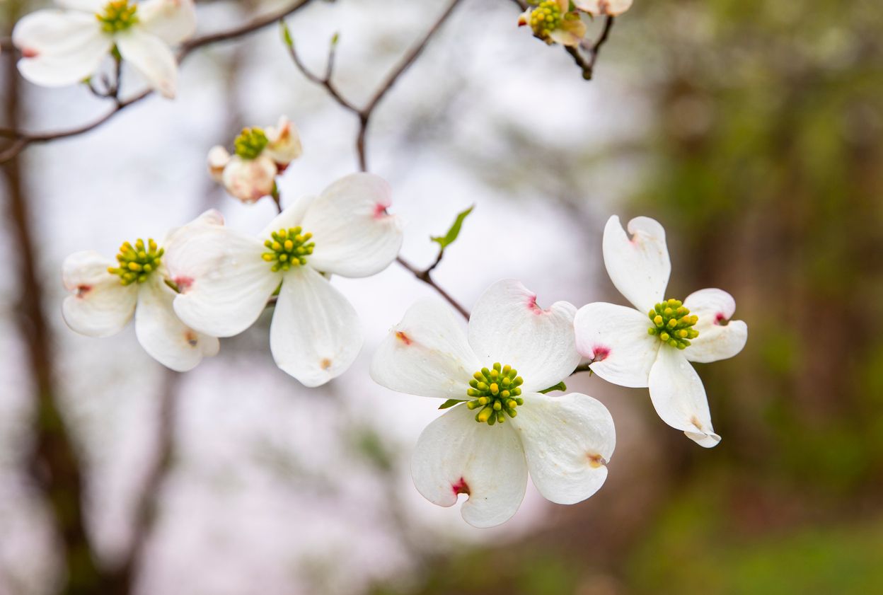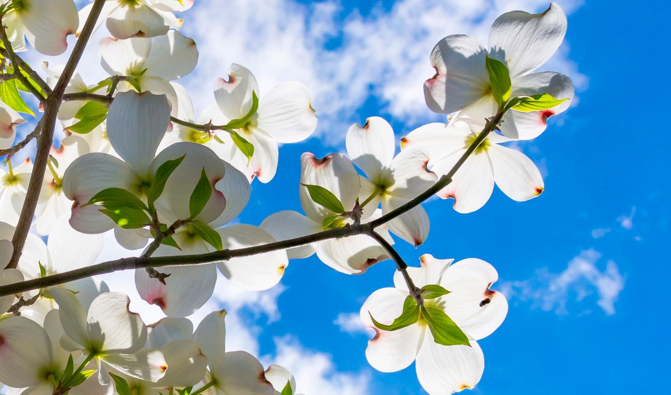大花四照花(Cornus florida)是一种四季咸宜的观赏植物:于深冬及春季观花,于夏秋观果,于深秋赏叶。这种落叶灌木或小乔木原产于美国东部,现在是美国家庭最常种植的庭园花木之一。它们的花朵造型甚至已经成为了一种常用图标,出现在各种服饰印花以及居家小摆设中。