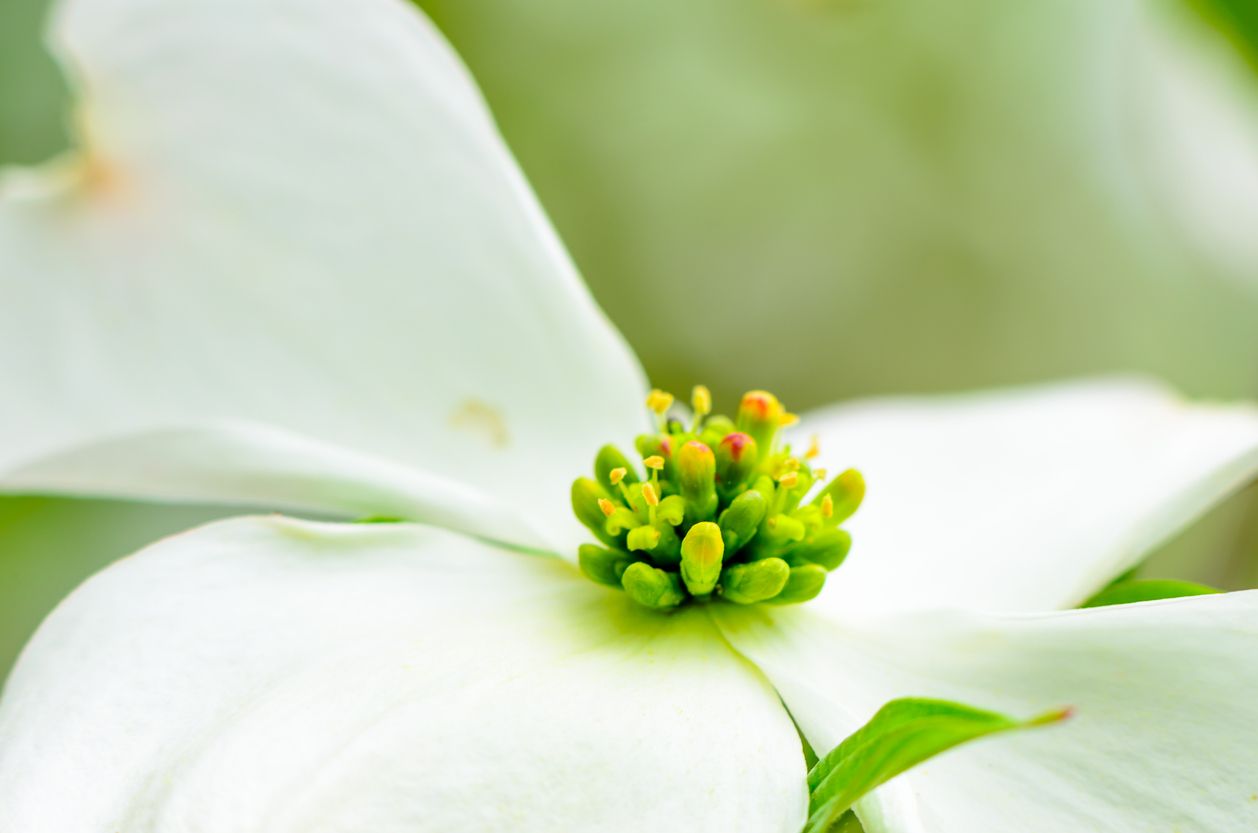 大花四照花有四枚近卵圆形的显眼的“花瓣”,但那实际上是花序的苞片。它们真正的花朵是苞片中央聚生为伞状花序的绿色小花。而且是花开了两星期左右,四个苞片才会完全展开。