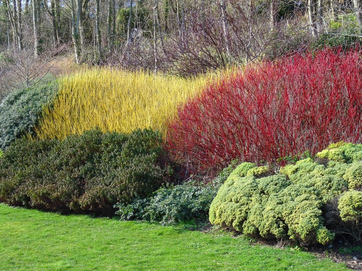 和其它观赏植物不同,冬天光秃秃的茎秆才是红瑞木和红梗木主要的观赏部分。入冬后,它们的茎秆颜色开始加深,变成如同红珊瑚一般的深红色或者明亮的鲜黄色,与周围灰暗的环境形成鲜明对比。与花期在冬季或早春的铁筷子、球茎花卉等搭配会取得令人惊喜的效果。