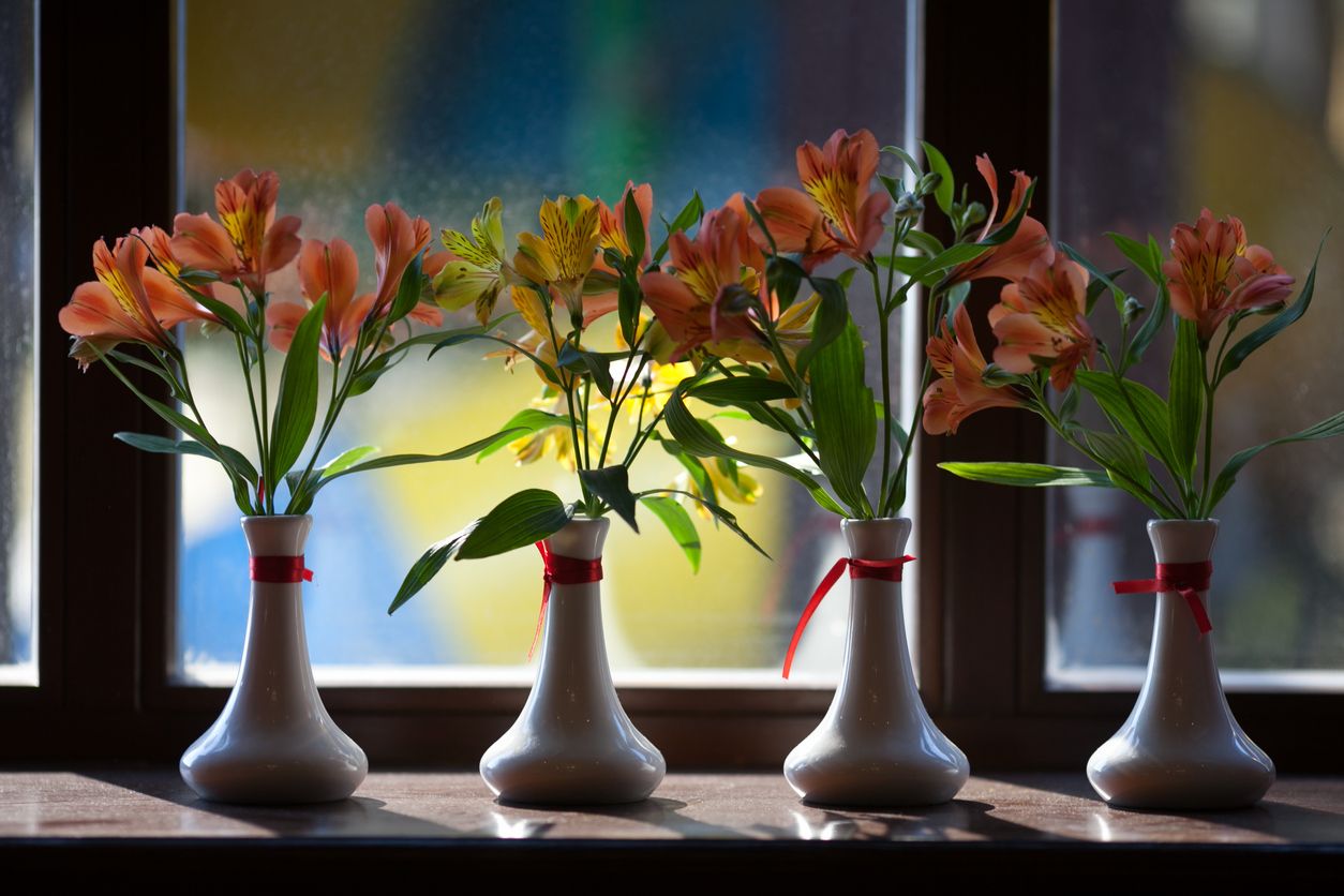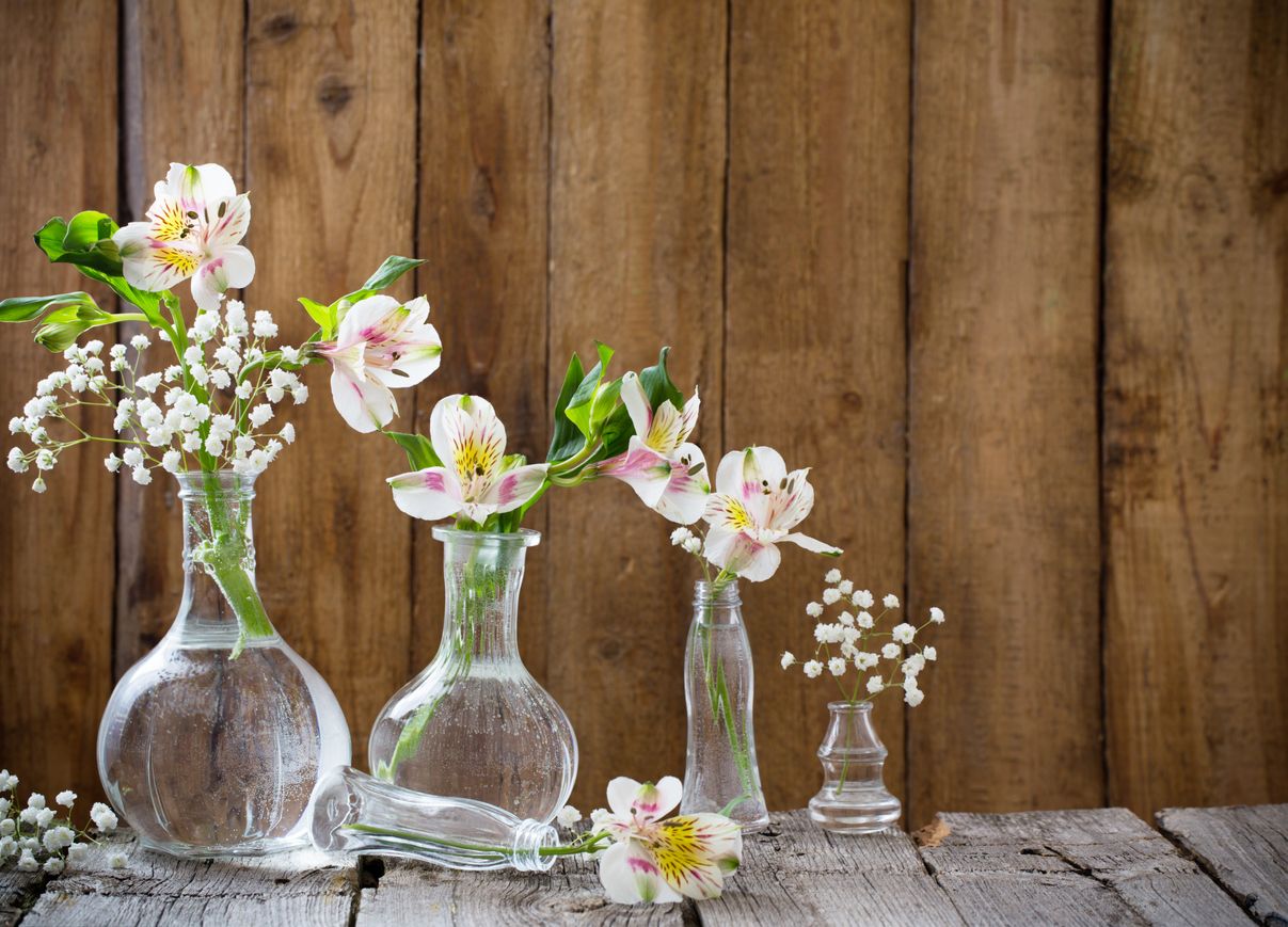插瓶前,首先要注意水质。六出花对自来水中残留的氯气很敏感,因此如果使用自来水,请先将其曝晒几个小时。另外,需要彻底清洁花瓶和花剪,用干净的花剪把浸入水面以下部位的所有叶片剪掉。