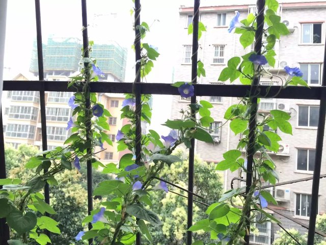 从野外采来牵牛花的种子,种在阳台外的花盆,眼看着它们一点点地发芽长大,爬架开花。闲暇时刻,于阳台上或坐或卧,抬眼看到的都是带着田园气息的灿烂。