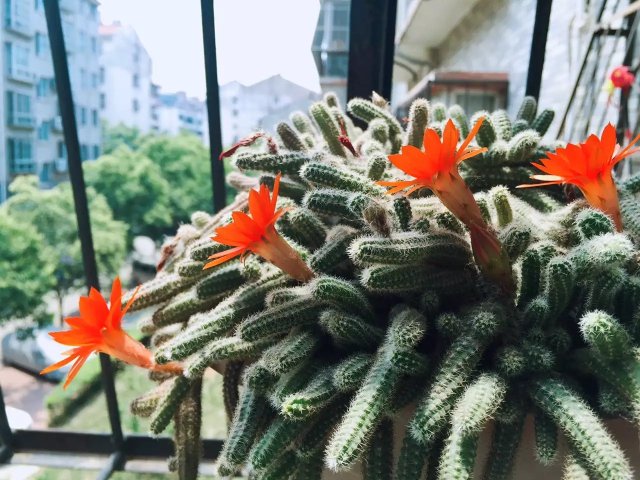 这盆毛毛虫像被遗弃的孩子,在窗外风吹日晒自然成长,鼠尾掌每年开花的时候才会关注一段时间,想来有点愧疚啊~