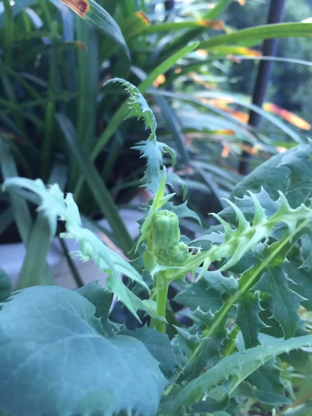 花盆里长出的一棵野草,经形色鉴定为苦苣菜,也幸福地成长在我的阳台外~