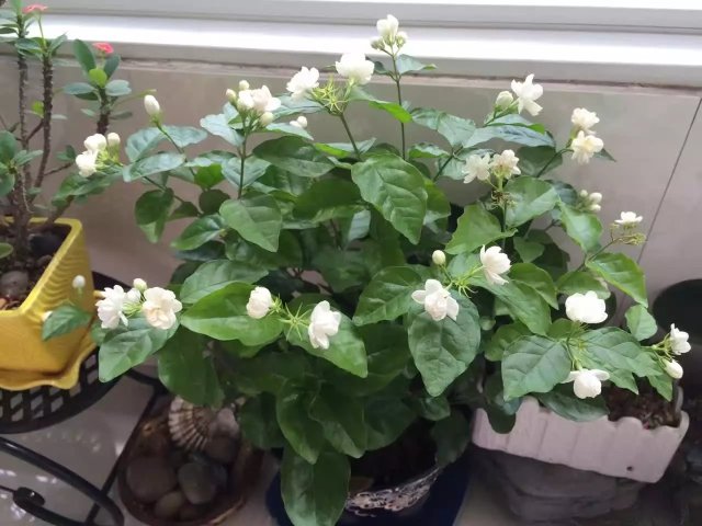 这盆墨兰来我家也三年了,每年要过春节的时候,都会抽出长长的花穗,绽放出紫蝴蝶一样的花儿,淡淡地散发着幽香,被香氛包围着的春节,还真是别有一番诗情画意~今年入的一盆茉莉,开放地尽心尽意,剪枝后等待看它们明年会不会更漂亮~