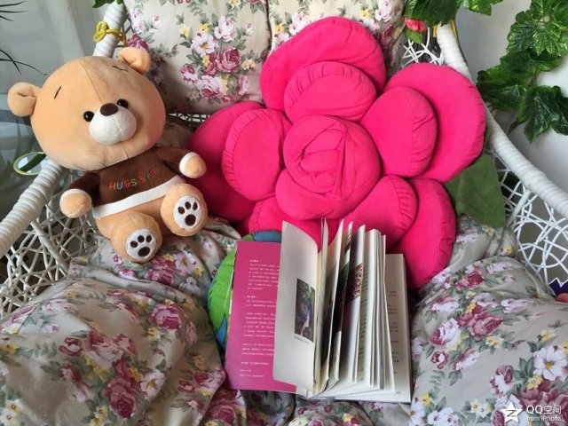 生活中累了,就抱着这个玫瑰抱枕,可爱熊伴着,摇椅上读上几页书,也算消遣~