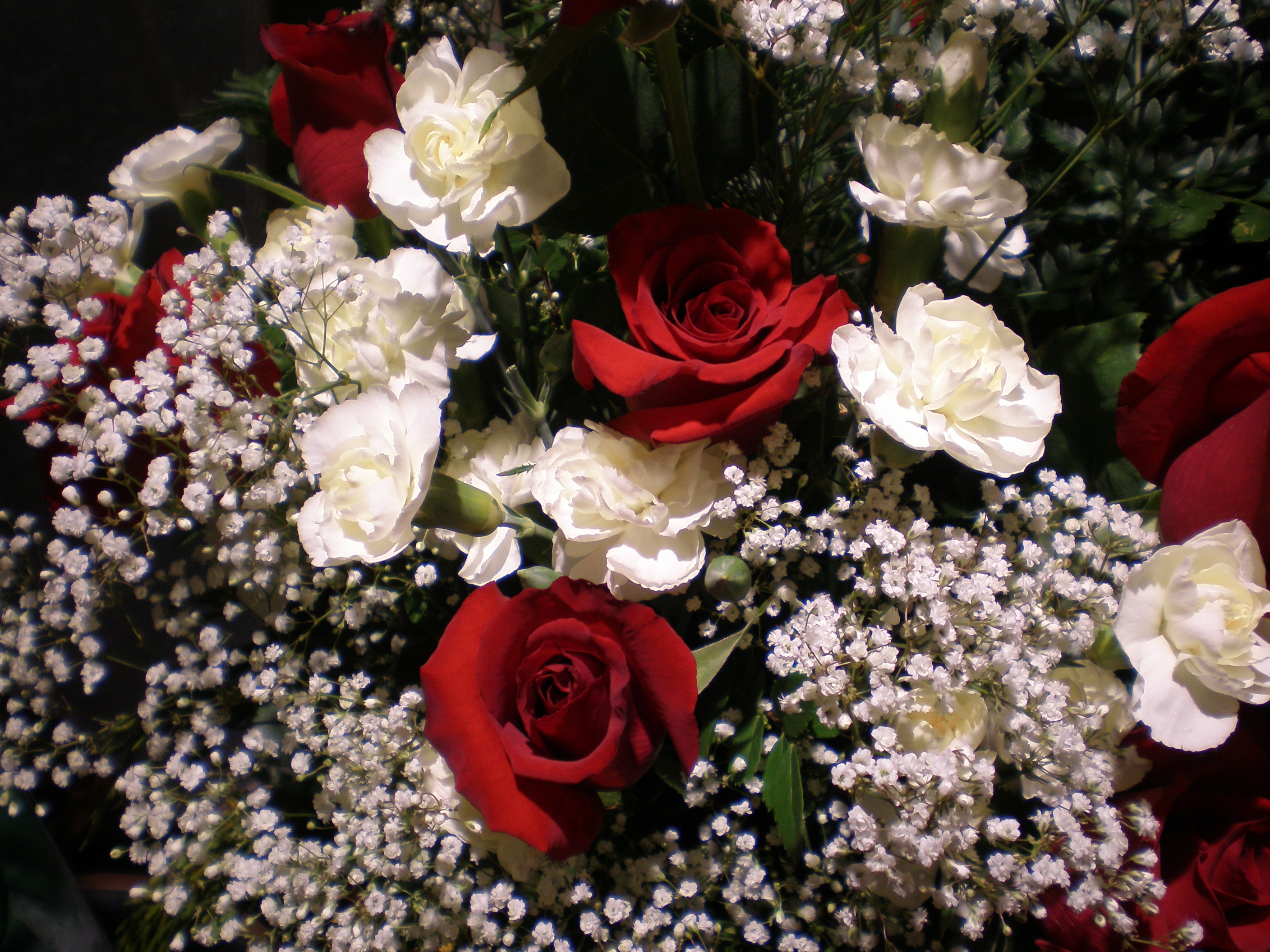 自制手捧花的时候,大家都会选择自己最喜欢的花嘛,是不是~但是,下垂部分的花枝容易掉,所以一定记得用铅丝把它缠绕牢固!牢固!牢固!在下垂部分基本完成后,开始安插主花束,即上部的圆形花束。圆形花束部分以玫瑰和盛开的百合作为主花,衬以珊瑚草、星点木等配叶。