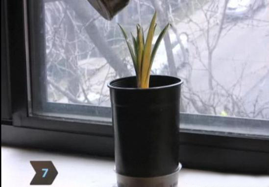 在浇水方面,应始终是保持土壤稍润,但不能湿(容易腐烂)。需要六到八周的时间让茎真正发出强壮的根,这个过程心急不得。约两个月后,菠萝的冠芽已经发展成新的植株,慢慢的,原来菠萝冠芽的叶子会开始死亡,变成褐色,新叶开始长出。在次年的过程中,剪掉原来的叶子。在此期间,菠萝应浇水一周不超过一次。最后,剩下的就是等待再等待,两年后希望栽种菠萝的宝宝们,都能收获一个香甜的菠萝!