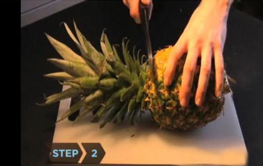 到水果超市挑选一个大个头,健康的菠萝。注意检查一下冠芽的叶子是否坚挺翠绿,还有菠萝果实不要太青绿(就是太生了)。还要细心地检查一下叶丛中有没有虫蛀,可以试着轻轻拉一下叶子,如果很轻易被你拔出来,那就证明这个菠萝太熟了,不适宜种植。