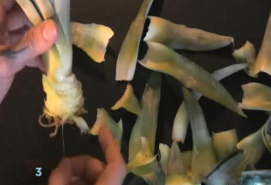 冠芽就是菠萝果实顶部的那部分,是最有营养的,所以用来种植最好!切冠芽的时候,注意在交界的地方下刀就好,不要留有果肉。你会看到切面有圆点,那是根原基,以后会从这些地方长出根来。小心的撕下底部的小叶片,露出白色部分,尽量不要破坏叶痕下的根原基。然后把冠芽横放在通风的地方,晾放两天,直到切口干燥愈合。这样做是为了防止腐烂,千万不要心急哦。
