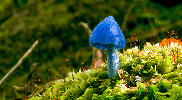 天蓝蘑菇的蓝色外衣很是迷人,它是由3种类色素所致。看着这小尤物,吃货一定会毫不犹豫地问“能(吃吗?)好(吃吗?)怎(么吃?)”